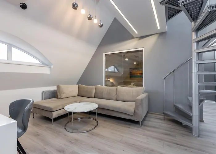 Šī 100 m² lielā naktsmītne atrodas 8 minūšu gājienā no ESPA Rīga un apmēram 20 minūšu gājienā no milzīgā Rīgas Doma. Lai nonāktu īstajā Rīgas sirdī, jums jāiet 25 minūtes. Turklāt dzīvoklis penthausā ar terasi ir tikai 8 minūšu gājienā no Latvijas Nacionālā mākslas muzeja.